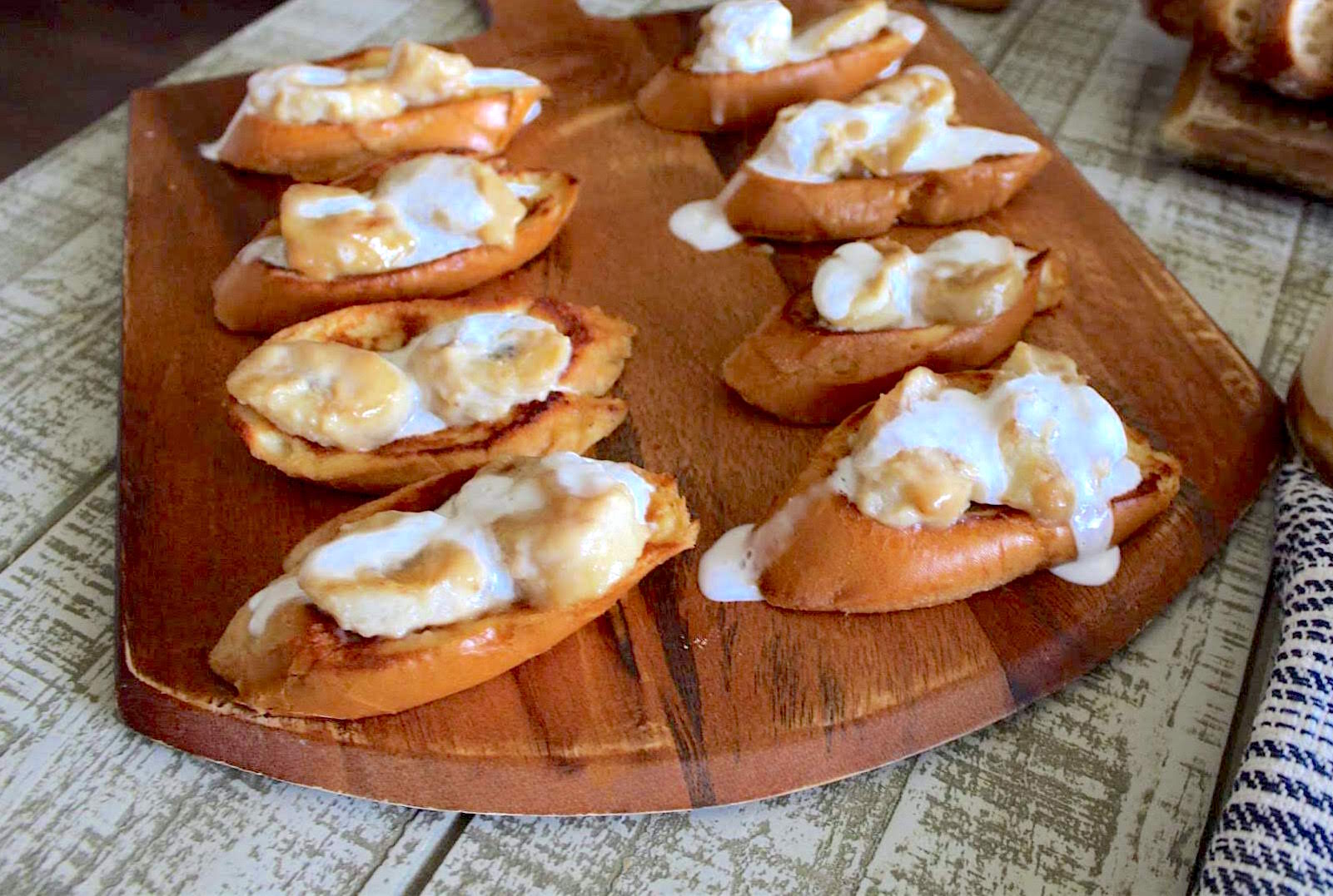 1. Scoop about 1 tbsp of the caramelized banana mixture on top of each slice of toast. Top with sauce from the caramelized bananas.